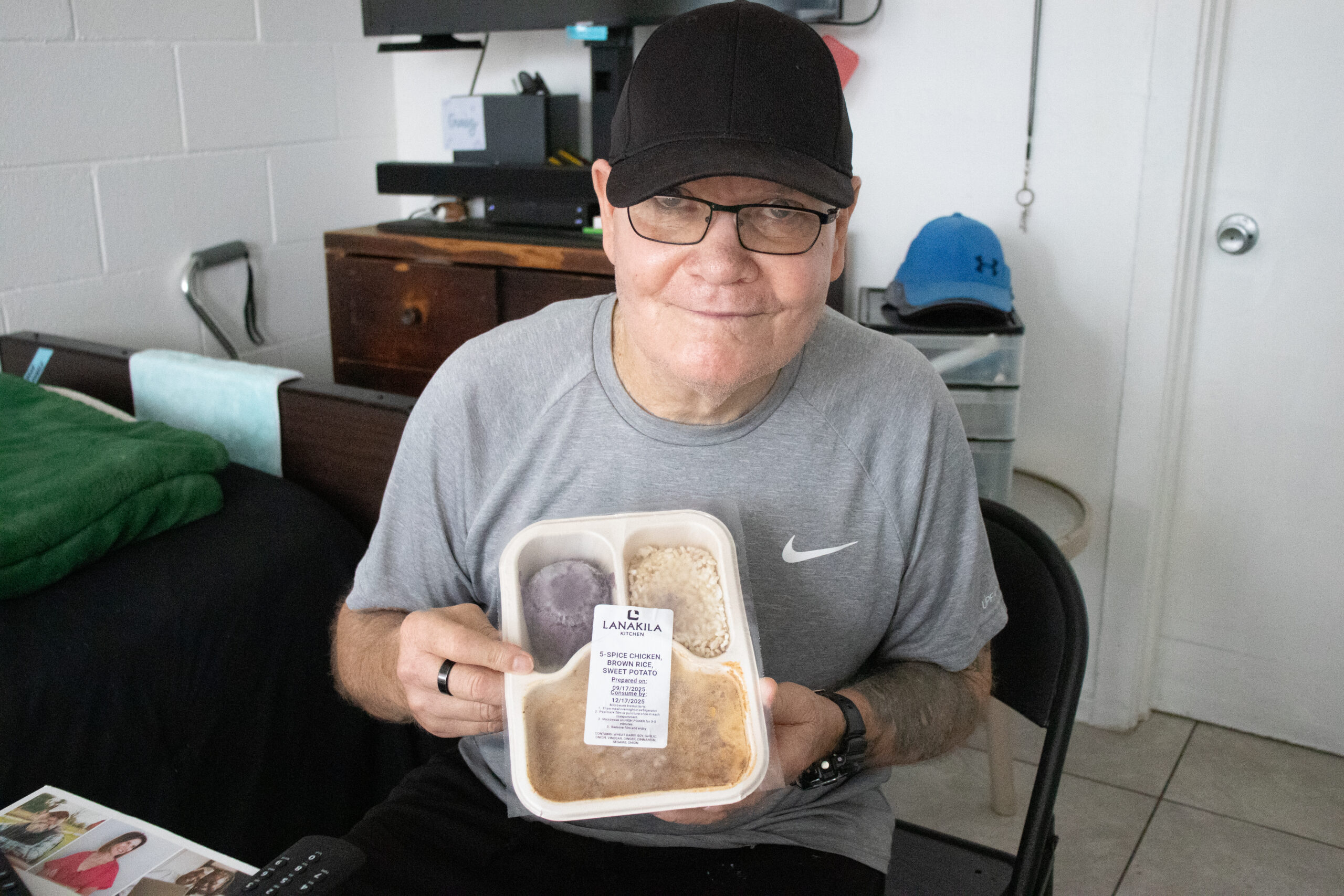 For the past three years, Lanakila Meals on Wheels has brought Craig comfort, nourishment, and care. Each week, volunteers deliver hot, nutritious meals to his door with a friendly smile. “Before I had Meals on Wheels, there wasn’t enough food,” Craig shared. “I had nothing to eat, but now I’ve got plenty of food. It made a big difference.” He first learned about the program through his case manager and now relies on it, especially when benefits run low. The volunteers mean as much to him as the meals. “They’re really nice,” he said. “They’re polite, every one of them.”