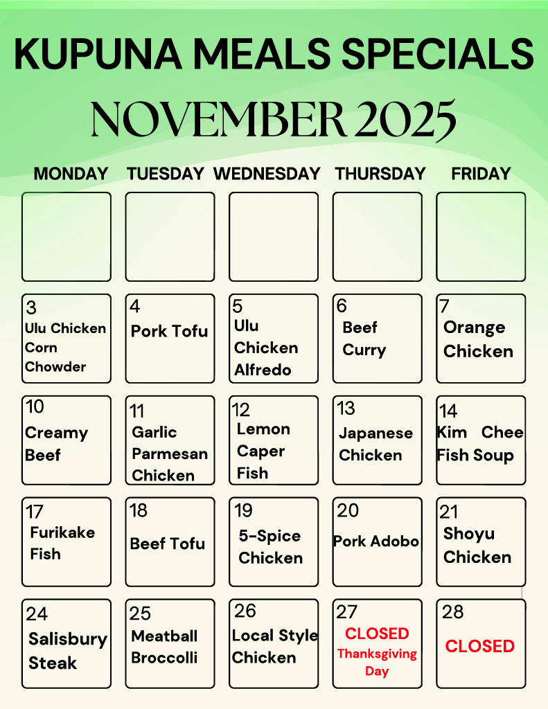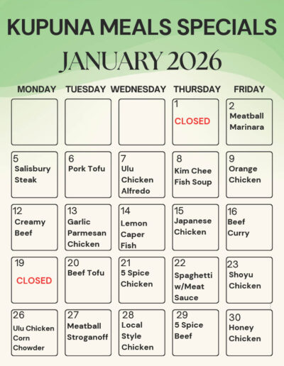 Anyone can order from Lanakila Kitchen! We have a cafeteria that is open to the public, located at Bachelot Street, where you can order our daily specials. You can also call us for your next party, lunch, or other catering needs.