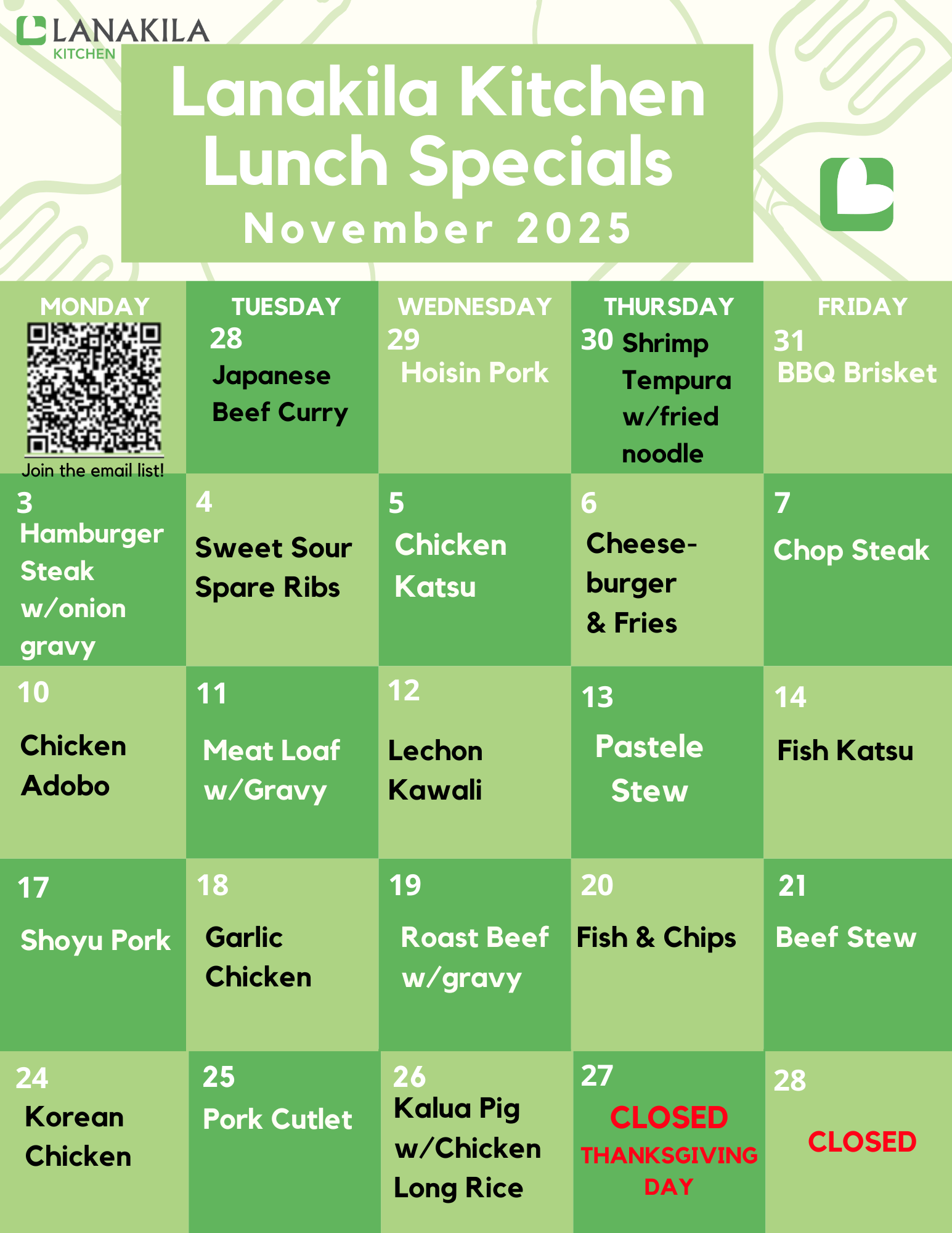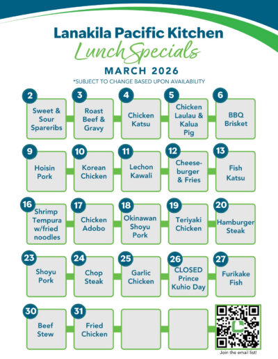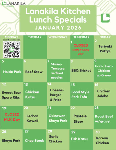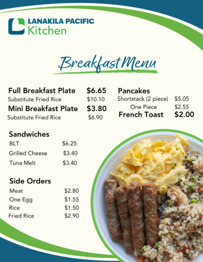 Lanakila Kitchen currently serves to-go options for breakfast and lunch with delicious menu items from local favorites.